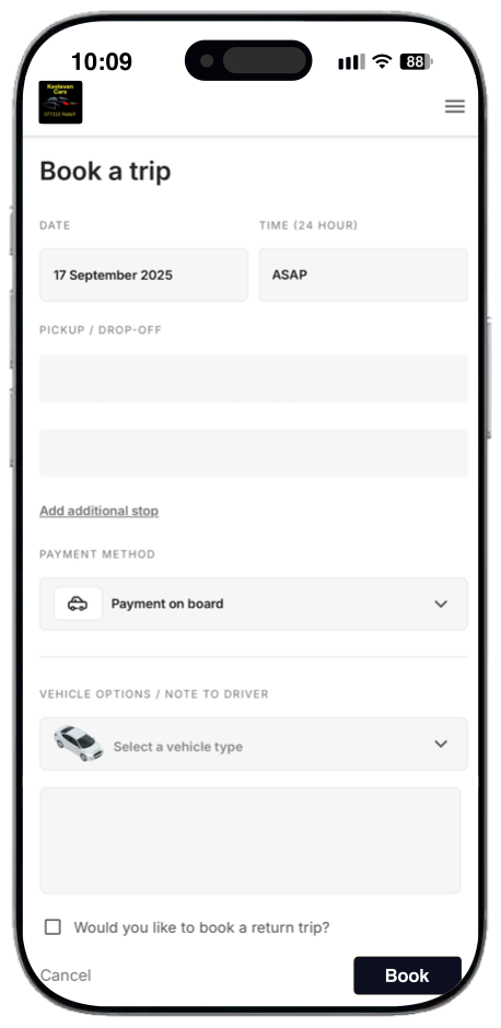 Experience hassle-free taxi bookings with just a few taps on your phone. Whether you're at home, the office, or on the move, our app ensures you can book a ride in seconds. Save time and get where you need to be, faster.